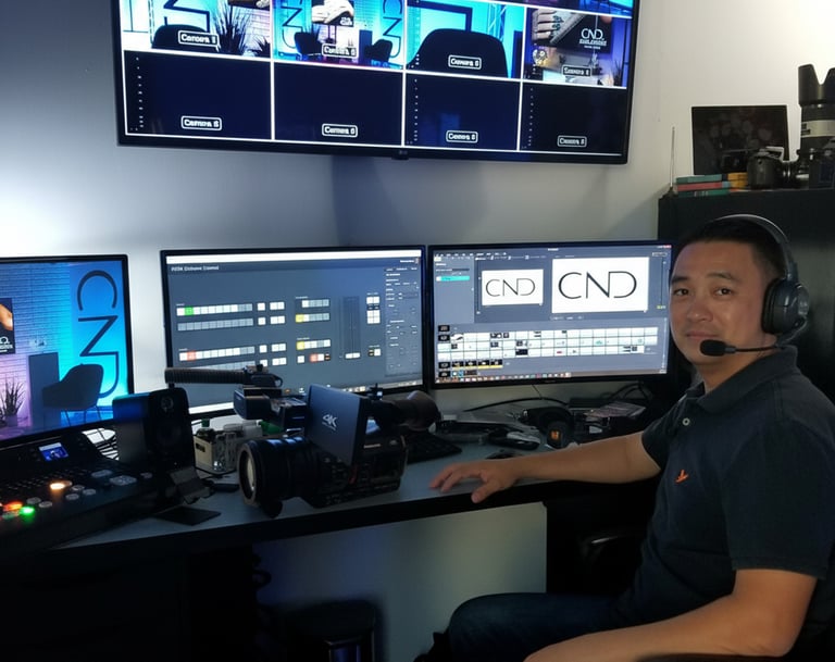 Design & set-up studios for live-stream corporate training, marketing, personal branding, tutorials for Tiktok, Youtube, Facebook, Instagram with multiple camera angles